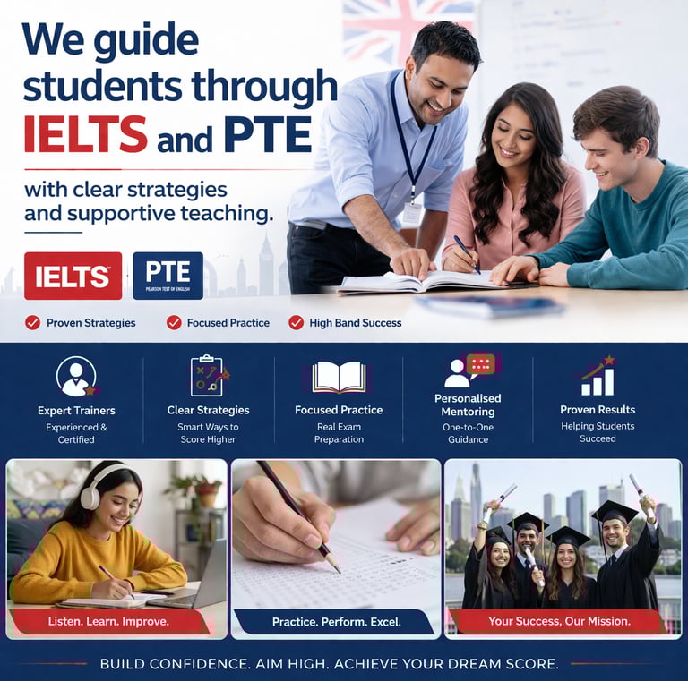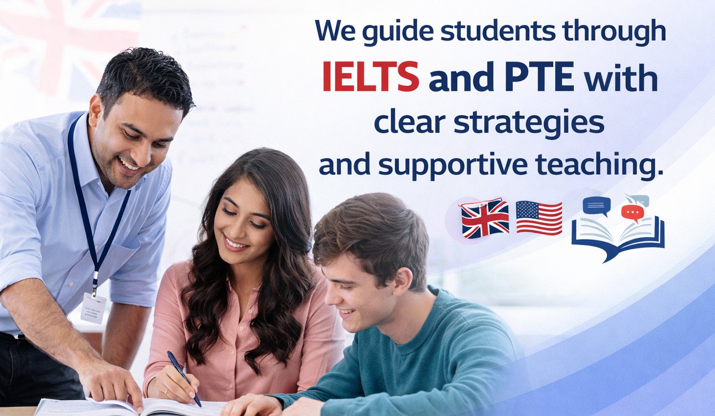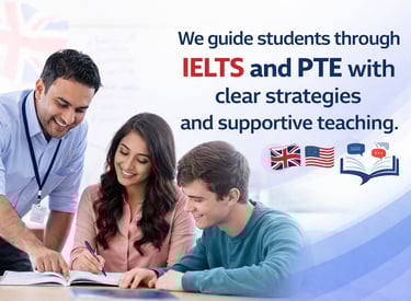 We guide students through IELTS and PTE with clear strategies and supportive teaching.